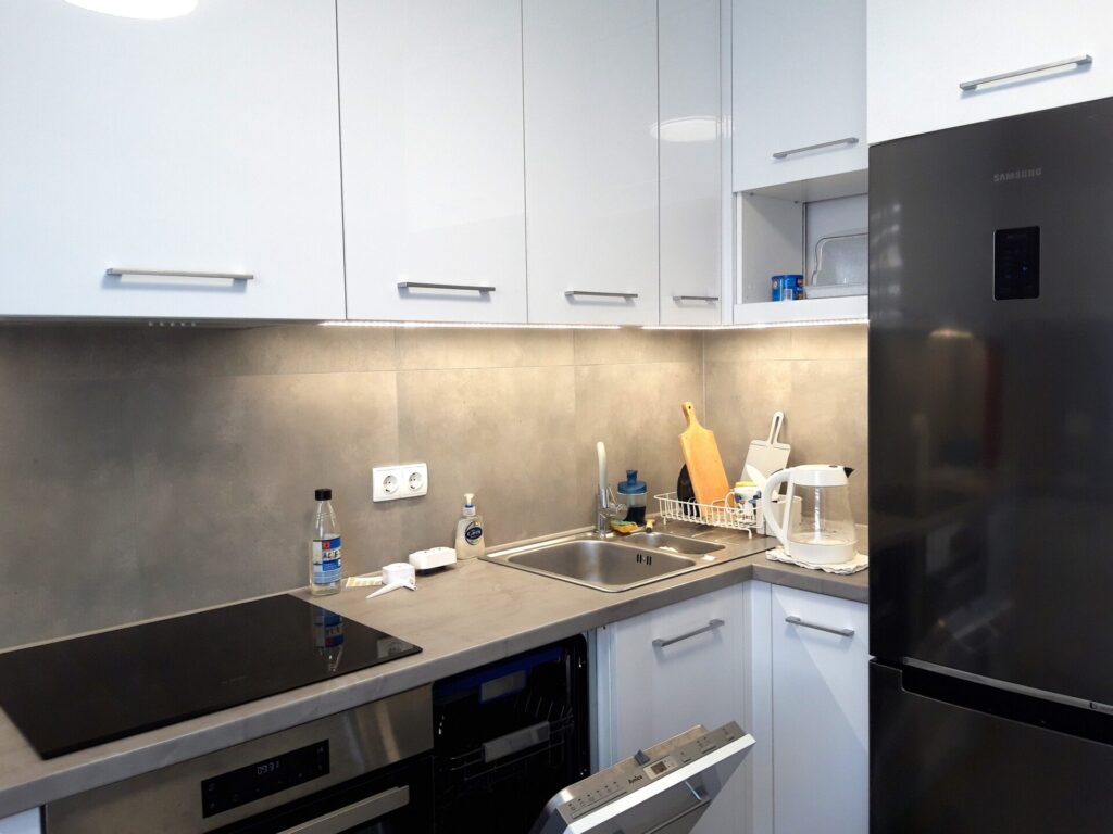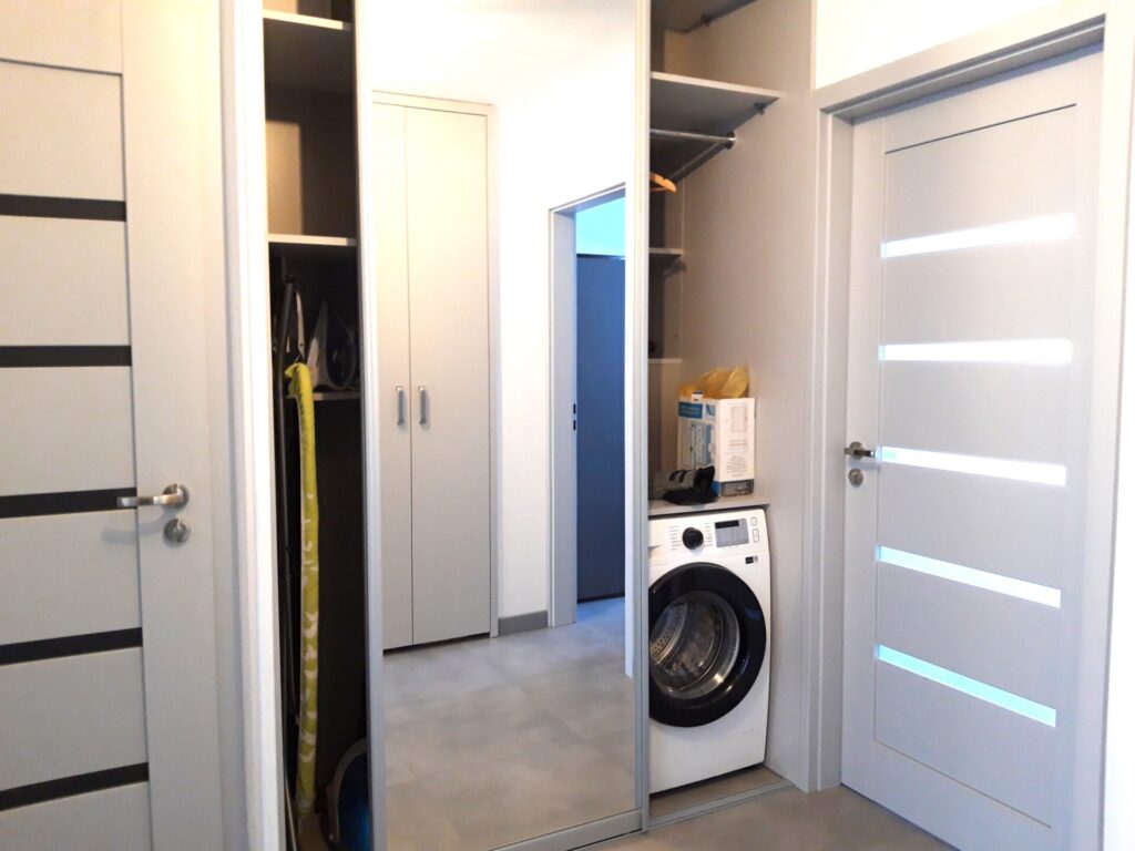 • ciepła woda miejska, płyta ceramiczna, pralka automatyczna, kuchnia w zabudowie, szafy typu Komandor Inne